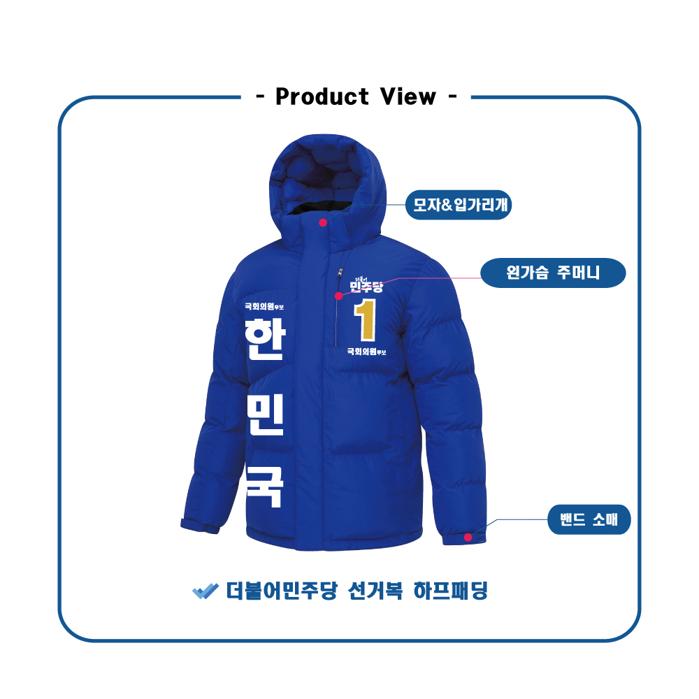 특징 인조소재의 마이크로 에어볼 충전재로 향균작용과 세탁에 용이한 신충전재의 하프패딩입니다.
