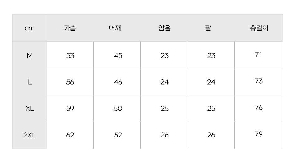 제품 제작 과정에서 같은옷에 같은 사이즈더라도 1~3cm정도의 오차는 발생할 수 있습니다. 그러므로 약간의 사이즈 오차로 인한 교환/반품은 불가합니다.