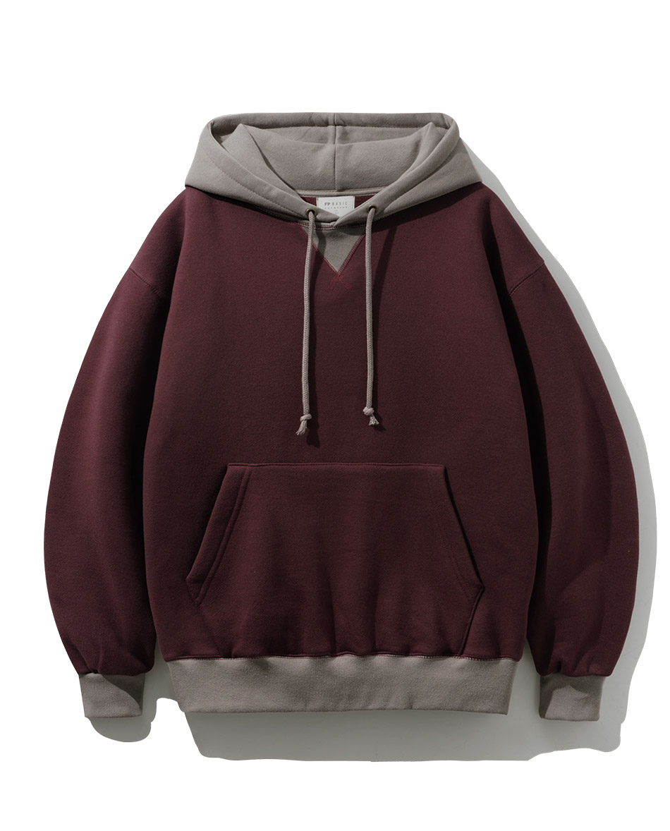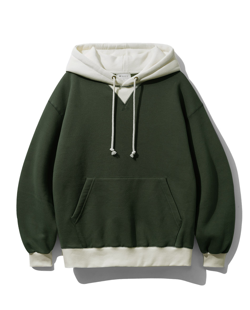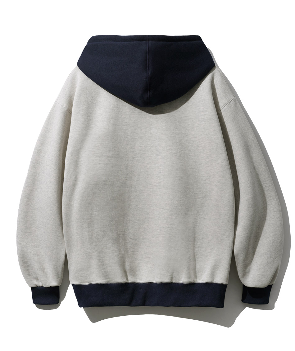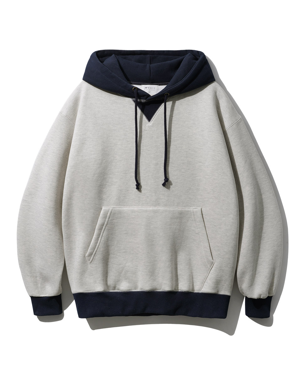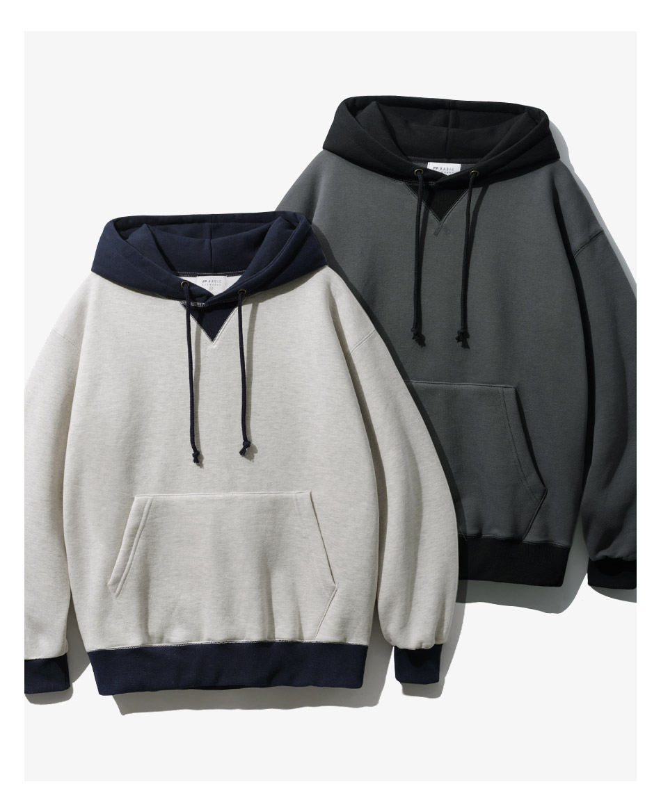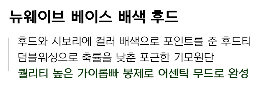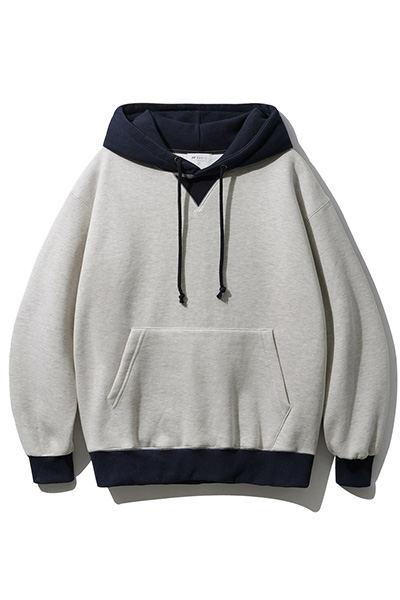 특징 후드와 시보리에 컬러 배색으로 포인트를 준 후드티