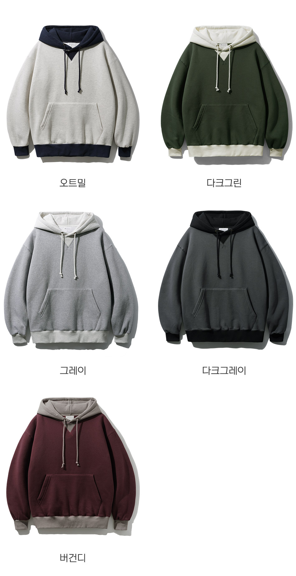 | 오트밀 | 다크그린 | 그레이 | 다크그레이 | 버건디 |