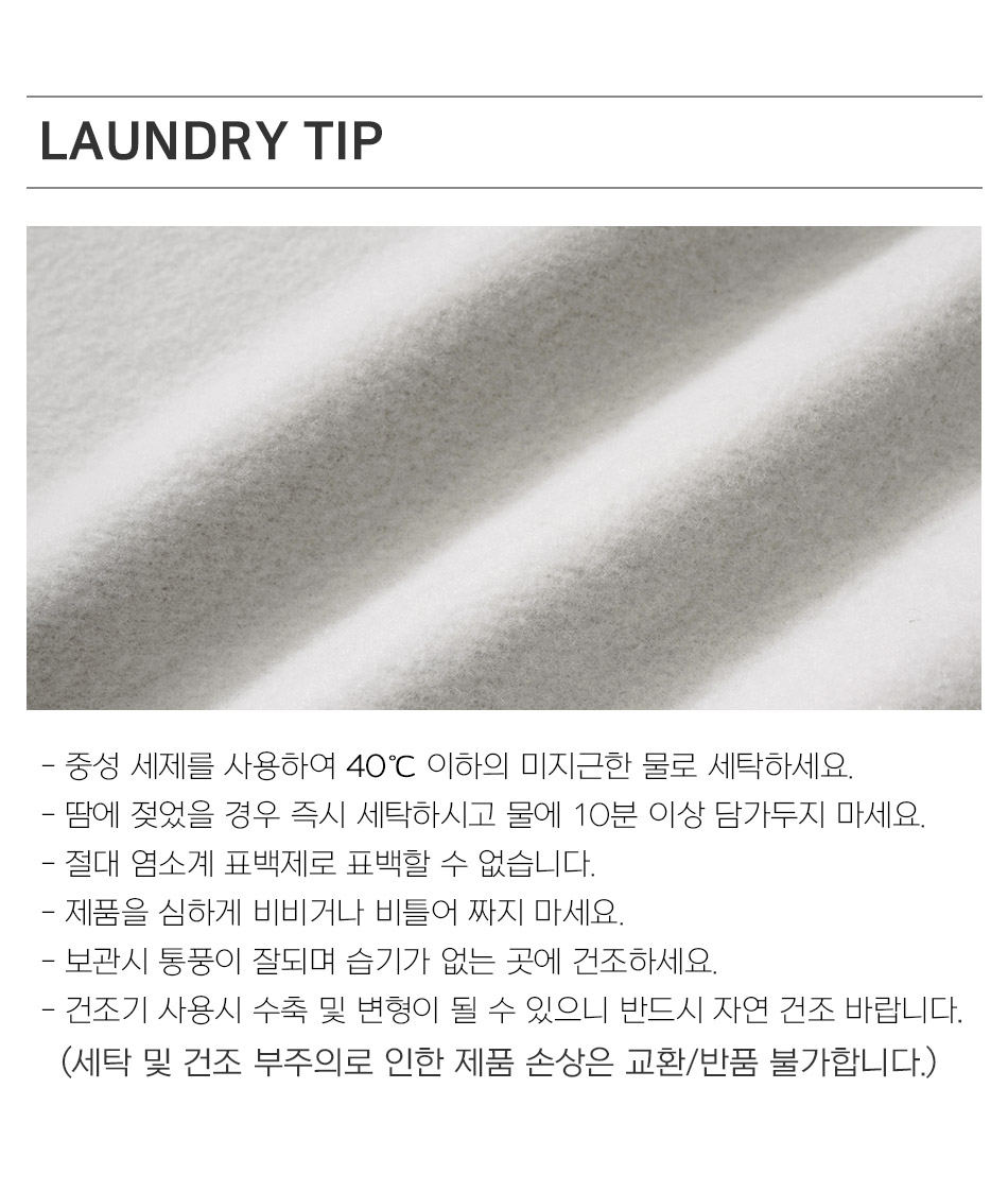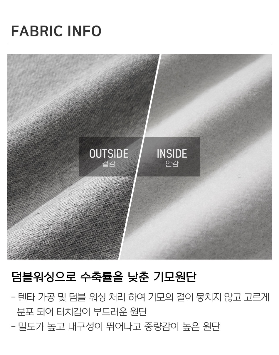 덤블워싱으로 축률을 낮춘 포근한 기모원단