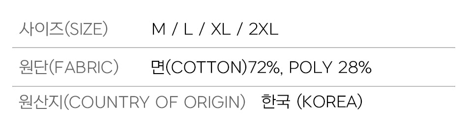 사이즈 M, L, XL, 2XL