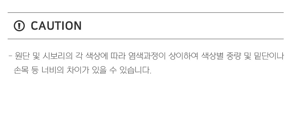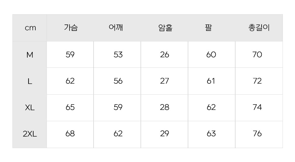 제품 제작 과정에서 같은옷에 같은 사이즈더라도 1~3cm정도의 오차는 발생할 수 있습니다. 그러므로 약간의 사이즈 오차로 인한 교환/반품은 불가합니다.