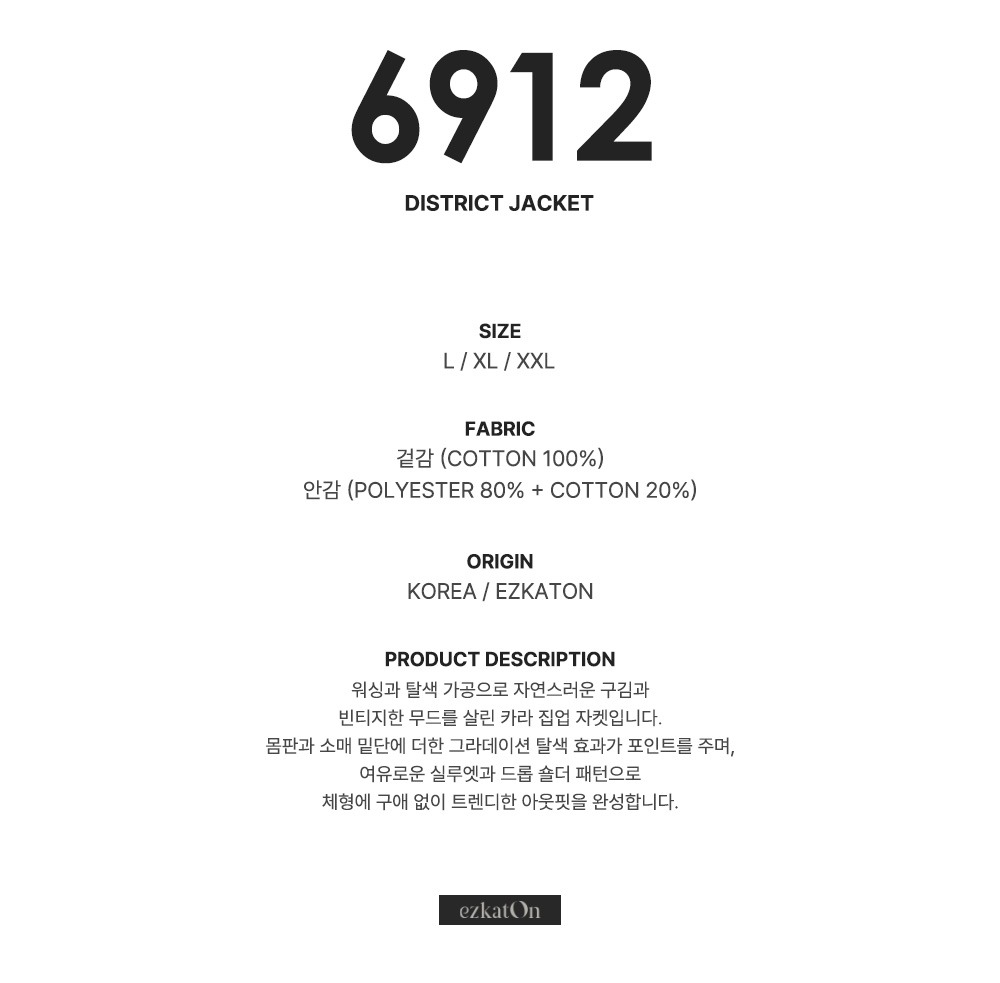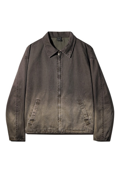 특징 워싱과 탈색 가공으로 자연스러운 구김과 빈티지한 무드를 살린 카라 집업 자켓입니다.