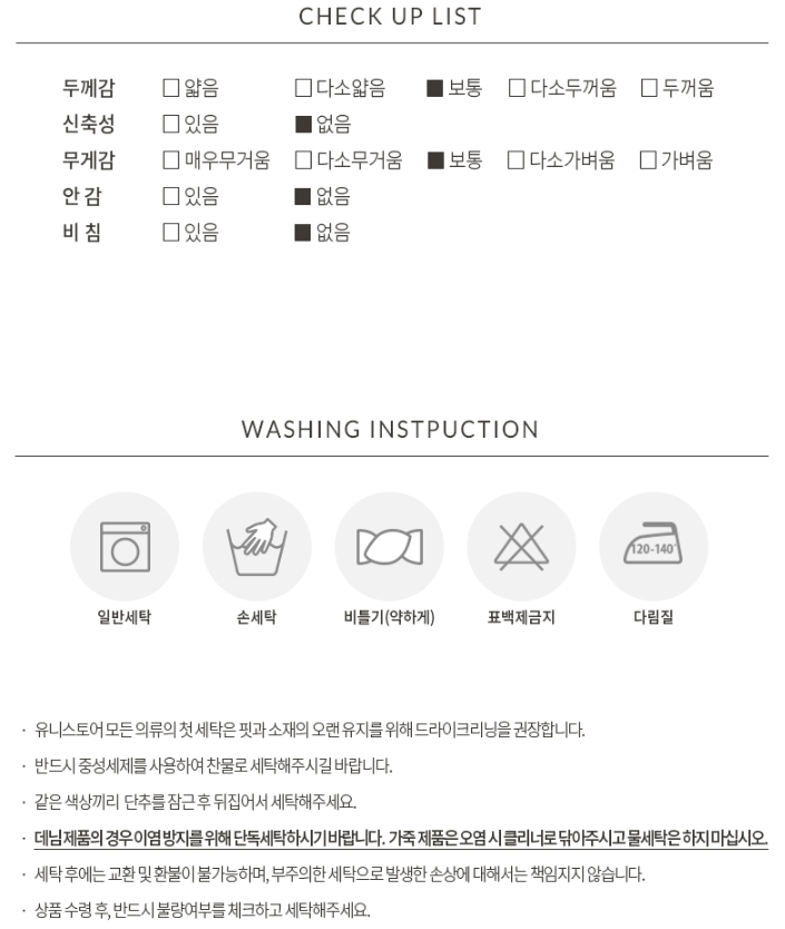 적당한 흡습성과 잦은 세탁에도 변함 없고,