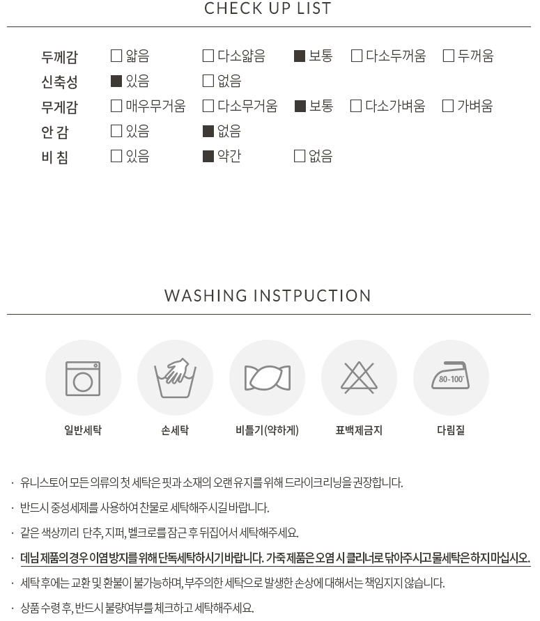 제품 제작 과정에서 같은옷에 같은 사이즈더라도 1~3cm정도의 오차는 발생할 수 있습니다. 그러므로 약간의 사이즈 오차로 인한 교환/반품은 불가합니다.