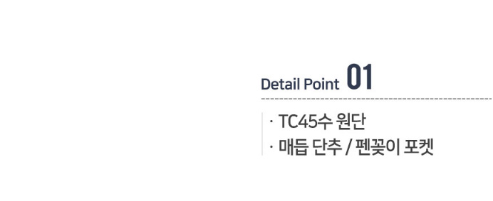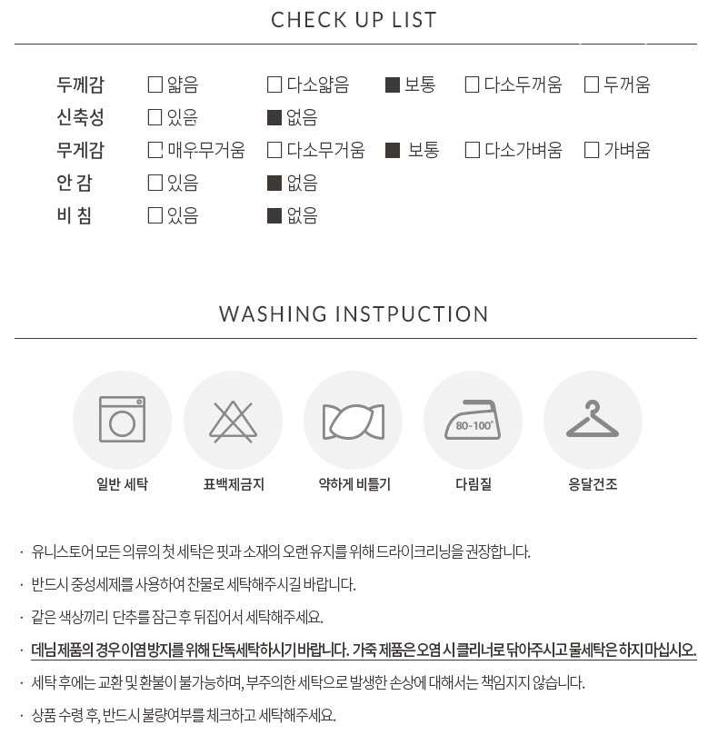 적당히 얇은 가벼운 착용감의 고밀도원단 물과 구김에 강합니다.