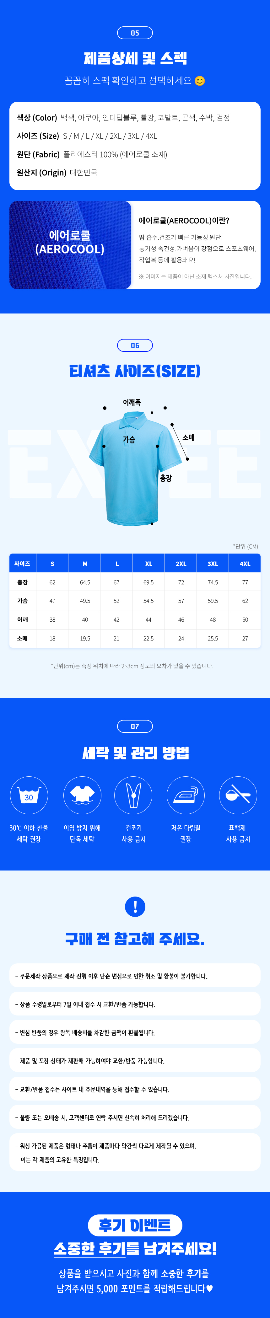 사이즈 S, M, L, XL, 2XL, 3XL, 4XL